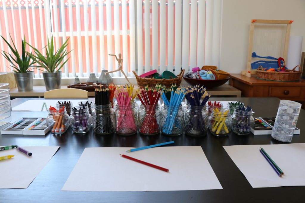 Exploration, discovery, research and experimentation are just some of the possibilities offered by our Atelier area. Children express their ideas, feelings and knowledge using the variety of materials provided there, working individually and in small groups. It is a truly beautiful learning laboratory. Materials such as dried roses, tree sticks, dried leaves, tiny green plants in glass jars, colourful watercolour paintings, different shapes and sizes of shells inside a fishing net, and more...